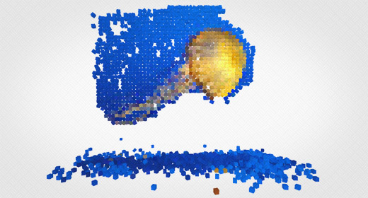 Here's a little experiment I called "Image Decomposer". It loads an image passed as parameter in the URL and creates a wall of little cubes which colors are based on the pixels of the image. When you rollover the cubes they fall down slowly decomposing it, hence the name.